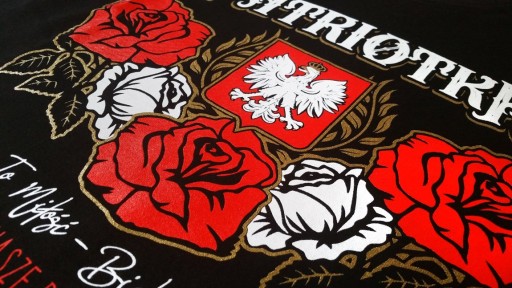 Miłość do własnej Ojczyzny jest nierozłącznie związana z barwami narodowymi. "Czerwień to miłość, biel - serce czyste... Piękne są nasze barwy ojczyste" - przytoczony fragment wiersza Czesław Janczarskiego, w głęboki sposób akcentuje ten fakt. Niniejszy wzór dedykujemy każdej z pań, dla których wartość patriotyzmu w życiu stanowi jeden z fundamentów. Koszulka oprócz przytoczonego fragmentu poezji zawiera główne słowo - Patriotka. Uzupełniają ją róże zabarwione na kolor biały i czerwony, a także herb Polski, z dumnym orłem - w złotej, zamkniętej koronie z krzyżem, otoczony nadającym mu dodatkowej rangi wieńcem. Czarny kolor materiału idealnie komponuje się z kolorystyką prezentowanego projektu, będą świetnym wyborem odzieży na co dzień, a nie jedynie od święta.