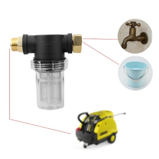 Filtruj wodę wpływającą do węża ogrodowego z wlotu, aby zapobiec uszkodzeniu ciśnieniowej pompy czyszczącej przez zanieczyszczenia lub osady;