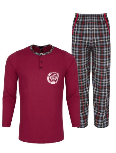 BAWEŁNIANA MĘSKA PIŻAMA Z DŁUGI RĘKAWEM I DŁUGIMI SPODNIAMI