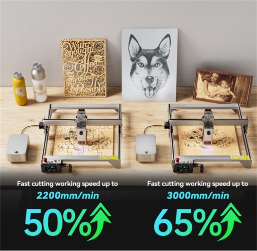 W porównaniu z grawerką laserową o mocy 10 W prędkość cięcia wzrasta o 200%, a głębokość cięcia o 150%. W porównaniu z grawerką laserową o mocy 20 W prędkość cięcia wzrasta o 50%, a głębokość cięcia o 25%.