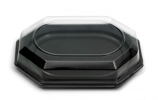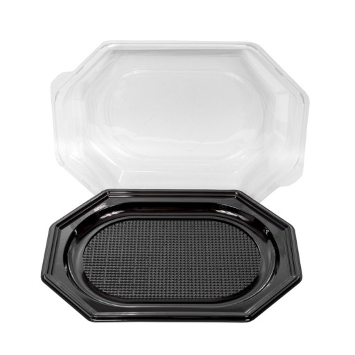 Patera plastikowa czarna z pokrywą, gastronomiczna, jednorazowa o wymiarach 35x25, rozmiar M - 10 sztuk.