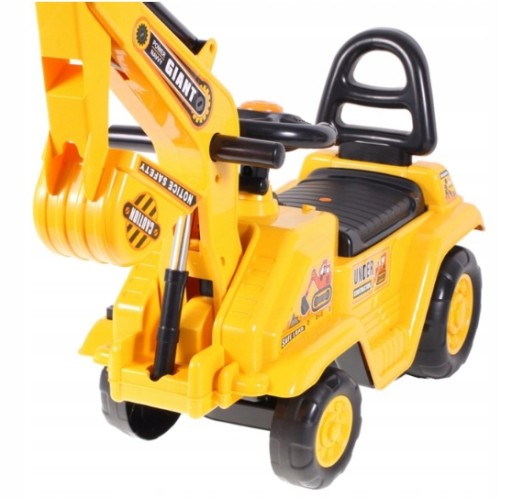 ▶ Realistycznie wykonana koparka służy dziecku jako jeździk - dziecko odpycha się nóżkami w trakcie zabawy.