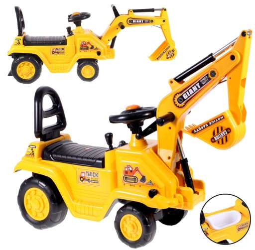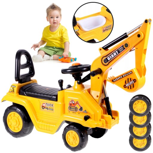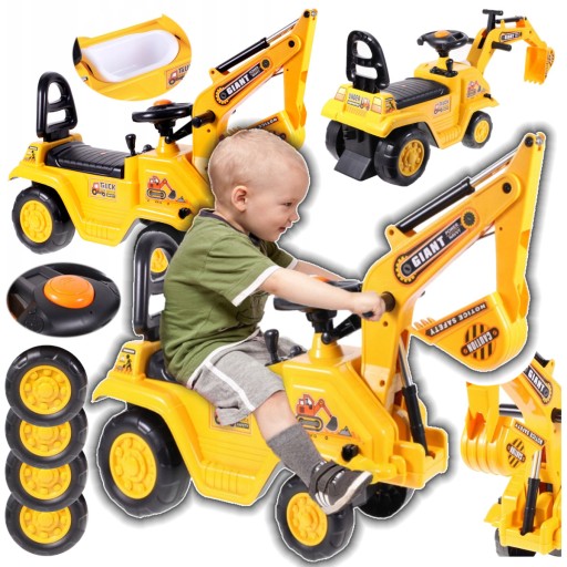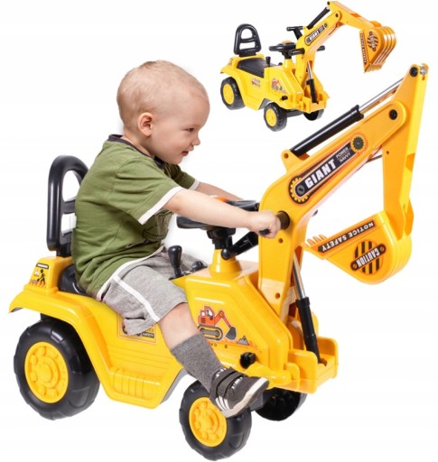 ✅Realistycznie wykonana koparka służy dziecku jako jeździk - dziecko odpycha się nóżkami w trakcie zabawy.