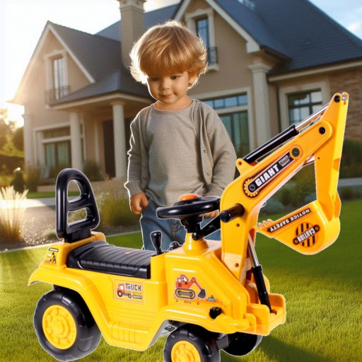 Całkowicie bezpieczny, rewelacyjny pojazd dla dziecka, który może być wykorzystywany w domu w celu doskonalenia umiejętności kierowania pojazdami budowlanymi.