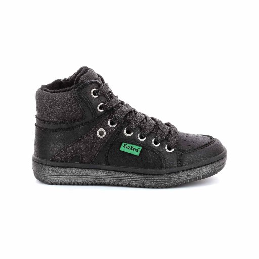 Model KICKERS LOWELL too para wysokich trampek dla dzieci, składająca się z syntetycznej cholewki i podszewki ze sztucznego futra. Te wysokie trampki gwarantują wygodę i wytrzymałość dzięki skórzanej wkładce, termopropylenowej podeszwie zewnętrznej oraz sznurowaniu i zapinaniu na zamek.