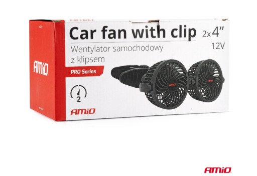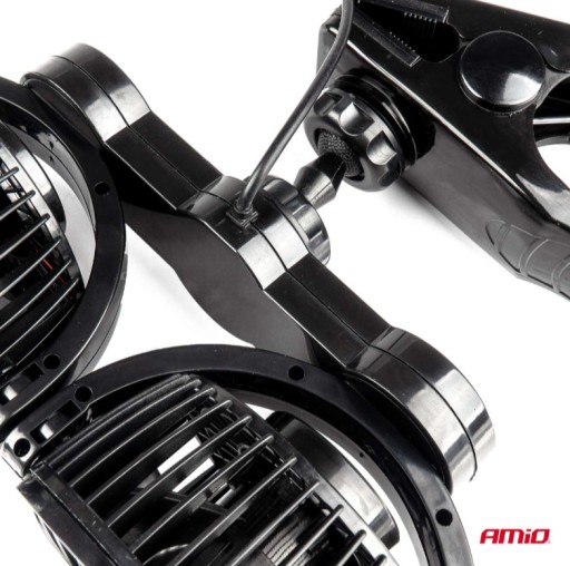 AMiO PRO WIATRAK WENTYLATOR SAMOCHODOWY ZASILANY Z ZAPALNICZKI SAMOCHODOWEJ 12V PODWÓJNY MOCOWANY NA KLIPS