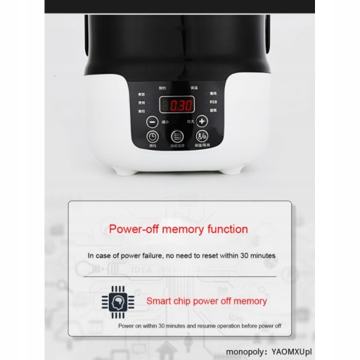 Function: Non stick coating inner pot, timer function, digital LED display screen