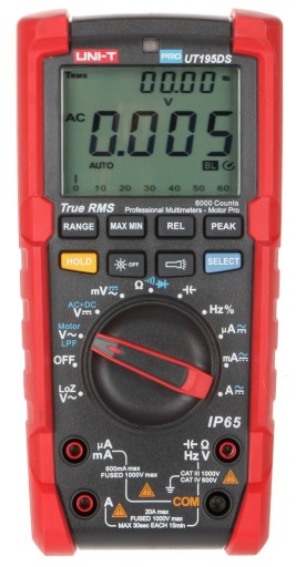 Natężenie prądu zmiennego AC: 600 µA / 6000 µA / 60 mA / 600 mA / 6 A / 20 A ±(1%+3)