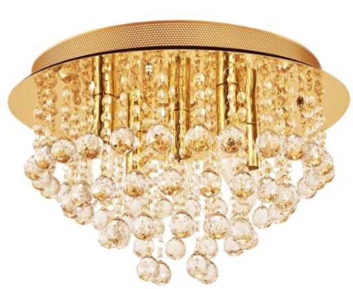 Lampa sufitowa CRYSTAL to eleganckie oświetlenie, które doskonale sprawdzi się w przedpokoju, salonie lub sypialni.Metalowa, wykończona złotym kolorem podstawa prezentuje się bardzo estetycznie, a całości dopełniają kryształowe klosze o tradycyjnym kształcie.