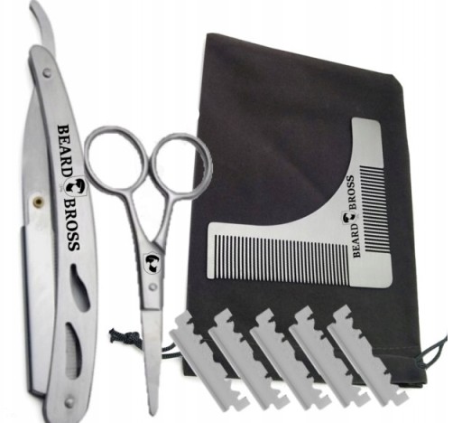 Набор для бороды, бритва, трафарет, накидка, кисть