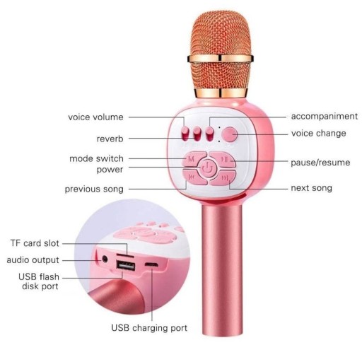 Bezprzewodowy mikrofon do karaoke Bluetooth, przenośny mikrofon dla dzieci odtwarzacz