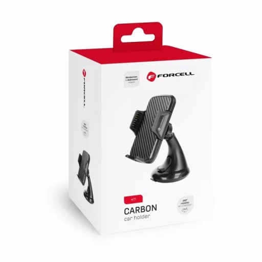 Forcell uchwyt samochodowy CARBON HT1 czarnyMocny i stabilny uchwyt samochodowy do zamontowania na szybie lub gładkim kokpicie. Posiada elegancki design- motyw carbonu sprawia, że doskonale prezentuje się z wnętrzem każdego auta.