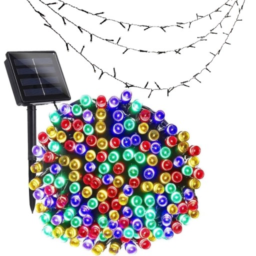 СОЛНЕЧНАЯ СВЕТОДИОДНАЯ САДОВАЯ ГИРЛЯНДИЯ 100x ЦВЕТНАЯ СВЕТОДИОДНАЯ ЦЕПЬ ДЕКОРАТИВНАЯ ВЕРЕВКА
