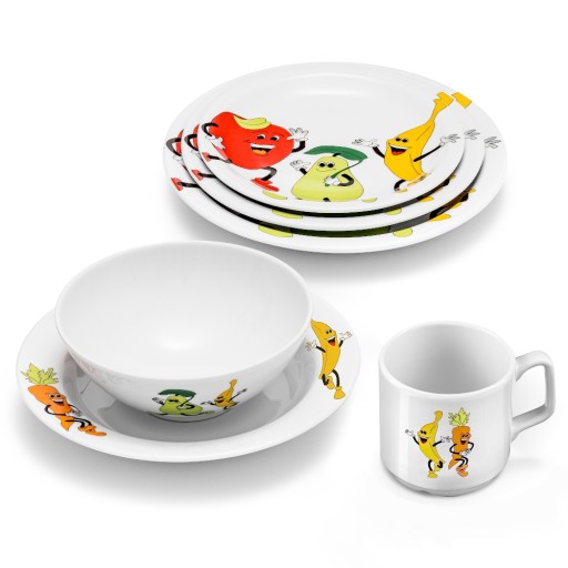 Kubek porcelanowy o pojemności 250 ml z linii Kids marki Modermo made by Lubiana. Każde naczynie z linii Kids zdobi specjalnie zaprojektowana kompozycja kolorowych i radośnie uśmiechniętych warzywno-owocowych przyjaciół, która zachęci niejednego niejadka do zajadania z apetytem wszystkiego, co znajdzie się na jego talerzu lub w miseczce.