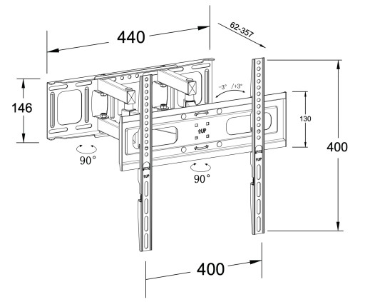 ✅ Uchwyt odstaje od ściany od 62 do 357 milimetrów co znacznie wpływa na estetykę i uniwersalność