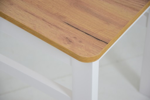 - Krzesła: podstawa oraz oparcie w kolorze Białym / siedzisko Dąb Craft