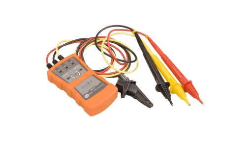 Prosty w obsłudze tester, pozwalający na określenie prawidłowości podłączeń w instalacji trójfazowej. Tester kolejności wirowania faz sygnalizuje zgodne lub przeciwne podłączenie, dodatkowo pokazuje również symetrię napięć w poszczególnych fazach.