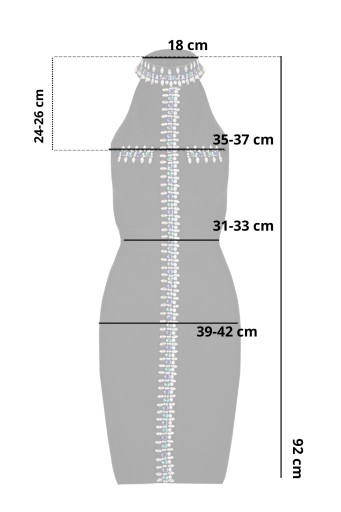 ROZMIAR S SZER. BIUSTU (CM) 35-37 SZER. TALII (CM) 31-33 SZER.BIODER (CM) 39-42 DŁ. CAŁKOWITA (CM) 92 DŁUGOSĆ OD SZYJI DO POCŻĄTKU BIUSTU (CM) 24-26 SZERKOŚĆ CHOKERA (CM) 18 CM ROZMIAR M SZER. BIUSTU (CM) 40-42 SZER. TALII (CM) 33-35 SZER.BIODER (CM) 42-45 DŁ. CAŁKOWITA (CM) 96 DŁUGOSĆ OD SZYJI DO POCŻĄTKU BIUSTU (CM) 24-26 SZERKOŚĆ CHOKERA (CM) 18 CM ROZMIAR L SZER. BIUSTU (CM) 43-45 SZER. TALII (CM) 36-38 SZER.BIODER (CM) 45-49 DŁ. CAŁKOWITA (CM) 98 DŁUGOSĆ OD SZYJI DO POCŻĄTKU BIUSTU (CM) 24-26 SZERKOŚĆ CHOKERA (CM) 18 CM