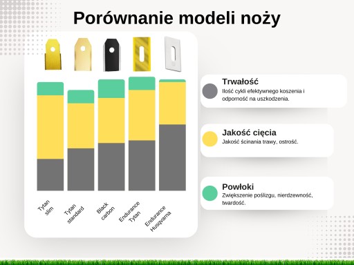 ⭐ Noże w testach sprawdziły się lepiej od tych oferowanych przez producentów robotów koszących.