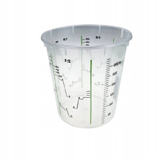 Uniwersalny pojemnik z przeźroczystego tworzywa z nadrukowaną podziałką umożliwiającą przygotowanie mieszanki w żądanej proporcji.