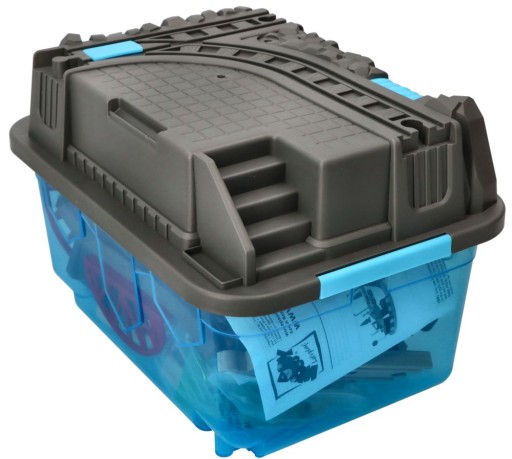 - dwuczęściowe, otwierane pudełko - po otwarciu i wyjęciu wszystkich elementów pudełko służy jako elementy zabawy np. góra pudełka to część kopalni