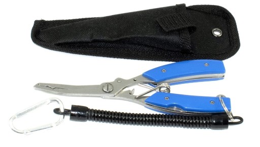 Wielofunkcyjne szczypce wędkarskie za pomocą których możemy przeciąć żyłkę/plecionkę/wolfram. Dodatkowo szczypce posiadają funkcję do zacisku śrutu wędkarskiego oraz końcówkę do rozginania kółek łącznikowych.