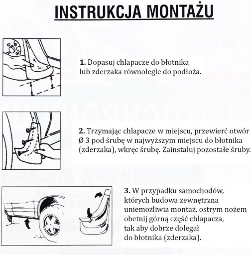 W zestawie z chlapaczami dołączone są etykiety zawierające skróconą instrukcję montażu (montaż chlapaczy jest bardzo prosty i nie wymaga skomplikowanych czynności)