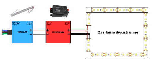 Powyżej 8mb taśmy LED musimy zasilić ją z dwóch stron aby uniknąć spadków napięcia, cały zestaw będzie pod to przygotowany