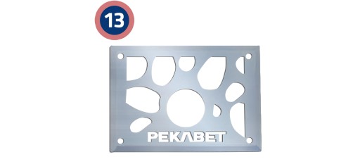 Szablon montażowy (14) umożliwia dokładne wycięcie otworów w pustakach potrzebnych do osadzenia trójników i kratki wentylacyjnej.