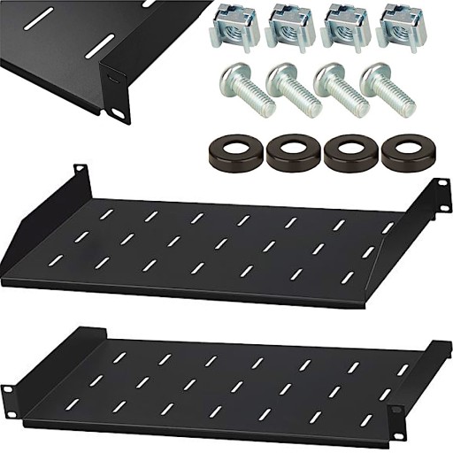 Specyfika półki rackowej pozwala na umieszczenie w odpowiedniej szafie typu rack urządzeń pozbawionych uchwytów montażowych.
