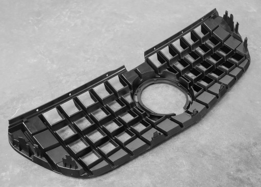 Atrapa przednia stylizowana na wzór modeli Mercedes AMG GTR Panamericana wykonana z niezwykle trwałego tworzywa sztucznego ABS odpornego na warunki atmosferyczne. Grill idealnie pasuje w miejsce starej atrapy, jego montaż nie wymaga żadnych przeróbek. Dedykowane elementy tuningowe pozwalają dodać elegancji nadając autu unikatowy, sportowy wygląd.