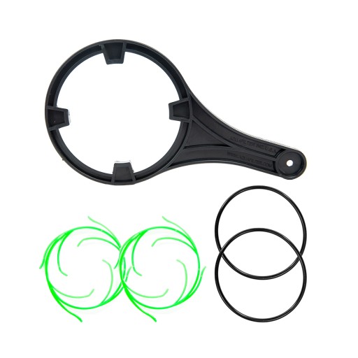 Oprócz tego w skład zestawu wchodzi klucz do odkręcania przezroczystych korpusów w celu wymiany wkładów filtrujących oraz 2 dyski centrujące zapewniające prawidłowe ułożenie wkładów filtracyjnych w korpusach.