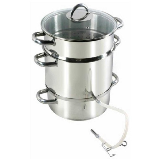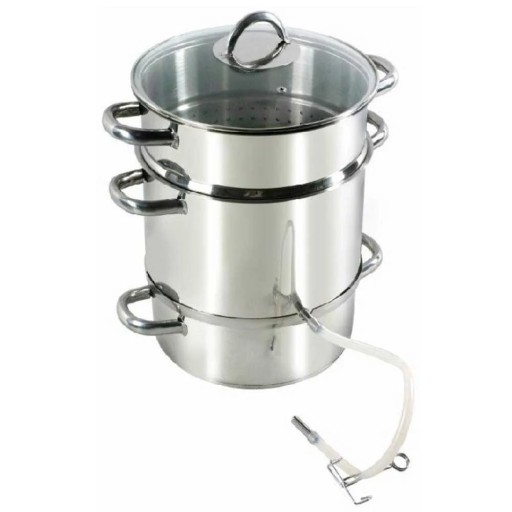 Sokownik Winston 6 l - idealny sposób na przyrządzenie zdrowego soku, domowym sposobem. Zasada działania sokownika opiera się na wydzieleniu soku z owoców pod wpływem gorącej pary, który następnie spływa do oddzielnego naczynia. Klasyczny sokownik, z którego korzystała niejedna babcia i mama. Konieczne wyposażenie w kuchni prawdziwej Pani Domu.Praktyczny i przydatny garnek do przygotowywania soków i dżemów , wykonany ze stali nierdzewnej. Wykończenie garnka zewnętrzne polerowane, wewnętrzne - satynowe, ścianki grubości 0,5 mm. Sokownik składa się z 3 części: garnek na wodę fi 22 cm, garnek na sok fi 22 cm z rurką odprowadzającą, garnek z pokrywką na owoce fi 22 cm.