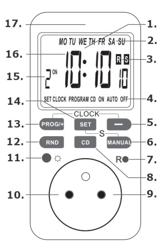 ПРОГРАММАТОР ТАЙМЕРА ЦИФРОВОЙ ПЕРЕКЛЮЧАТЕЛЬ ЖК-ТАЙМЕР НА 10 ПРОГРАММ С ЗАЗЕМЛЕНИЕМ