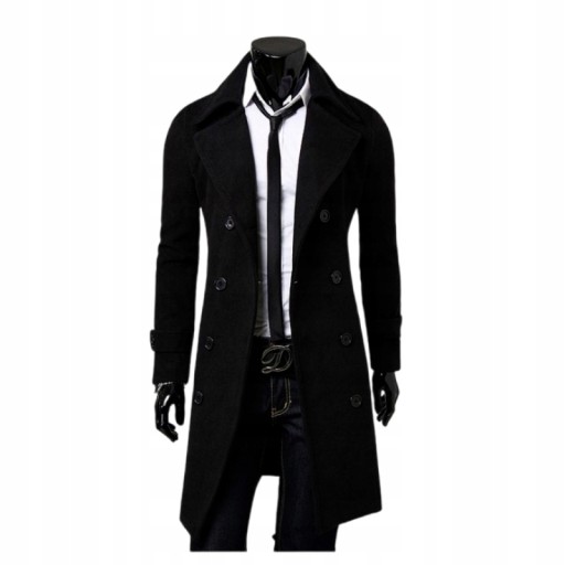PŁASZCZ MĘSKI KLASYCZNY STYLOWY CZARNY XXL