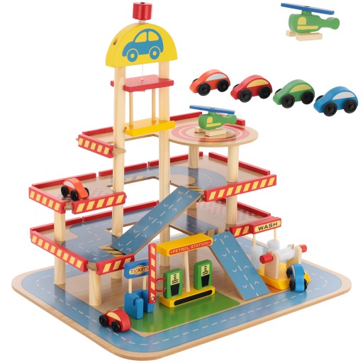 Ten szalony parking dla samochodzików to marzenie niejednego młodego fana motoryzacji. Wyjątkowy zestaw, który posiada aż 3 piętra do zabawy, z pewnością spodoba się każdemu chłopcu. Posiada wiele ciekawych i kolorowych elementów. Na parkingu znajduje się winda, stacja paliw, myjnia, a nawet lotnisko dla helikoptera. Jest niezwykle szybki i łatwy w złożeniu, dzięki czemu sprawdzi się nawet dla najmłodszych amatorów motoryzacyjnych.