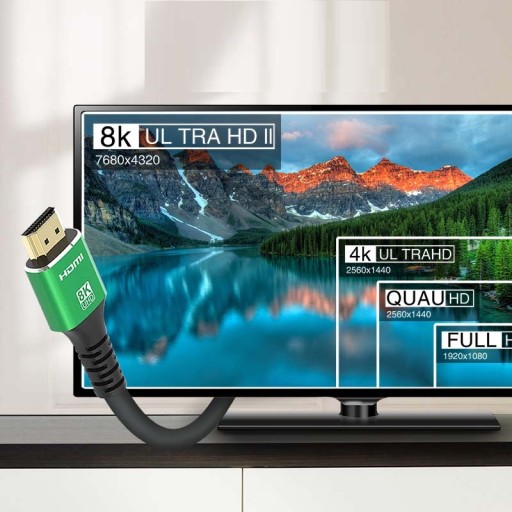 Przewód HDMI wykonano z najwyższej jakości materiałów, aby zapewnić kompatybilność z technologią HDMI 2.1, oferującą przepustowość na poziomie nawet 48 Gb/s. Zapewnia ona krystalicznie czysty i wyraźny obraz wyświetlany w rozdzielczościach 8K/60Hz oraz 4K/120Hz. Ponadto wspiera funkcje Dynamic HDR, Dolby Vision, HDR 10 czy 3D Video.