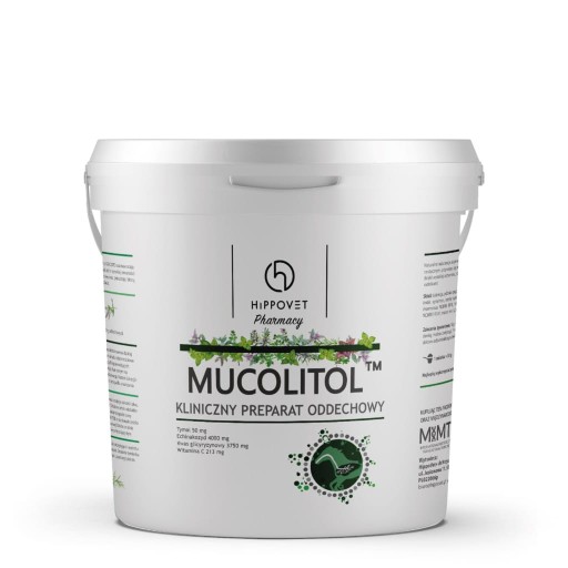 MUCOLITOL to kliniczny preparat wspierający drogi oddechowe dla koni z RAO/COPD oraz nawracającymi infekcjami dróg oddechowych. Mieszanka naturalnych ziół o wysokiej zawartości związków aktywnych długotrwale wspiera układ oddechowy oraz pobudzają błonę śluzową oskrzeli do wytwarzania śluzu, co zwiększa ich drożność.