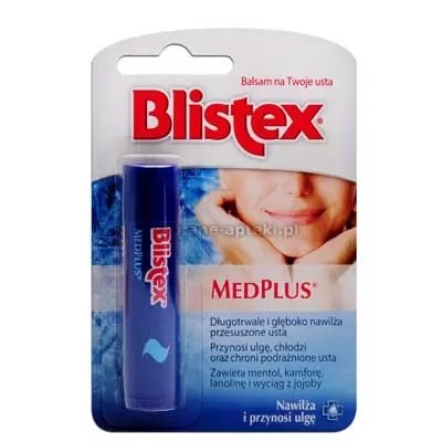 Balsam Blistex MedPlus długotrwale i głęboko nawilża przesuszone i podrażnione usta: tworzy ochronną barierę, która zapobiega utracie wilgoci i pomaga przywrócić właściwe nawilżenie przesuszonym ustom, daje wrażenie łagodzącego chłodzenia, które przynosi szybką ulgę podrażnionym ustom, chroni i pielęgnuje usta.