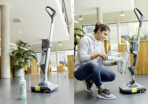 Dzięki szorowarce można uzyskać nawet do 20% lepsze efekty czyszczenia w porównaniu do ręcznego czyszczenia podłóg. Urządzenie wykorzystuje funkcję zamiatania wstępnego i wyposażone jest w grzebień do zbierania sierści i włosów, dlatego ogranicza konieczność odkurzania. Dzięki zastosowaniu dwóch zbiorników na wodę czystą i brudną, walcowych szczotek o szerokości 300 mm i zasysaniu wody bardzo dokładnie usuwa plamy różnego pochodzenia na posadzkach.