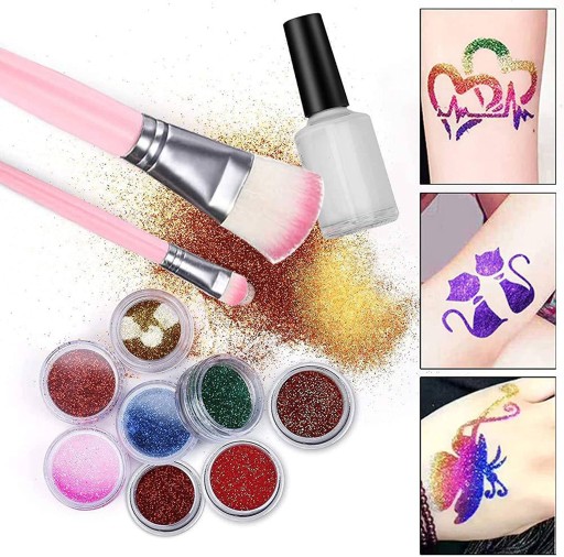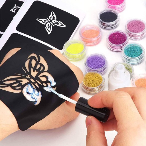 ✔️ Niezwykły zestaw do robienia tatuaży brokatowych i naklejanych. Wspaniałe tatuaże staną się super modnym dodatkiem do Twojego wyglądu. Bądź kreatywny i twórz tatuaże dzięki temu wspaniałemu zestawowi. Wybierz spośród trzech brokatów ciała, sześciu szablonów i dwunastu transferów tatuaży, aby stworzyć wielokolorowy, brokatowy tatuaż, który będzie wyjątkowy.