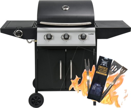 Profesjonalny grill gazowy 3+1 do przygotowywania potraw na świeżym powietrzu, z wygodną regulacją pozwalającą na idealne wypieczenie potraw. Półki boczne oraz pojemna, zamykana szafka ułatwią przechowywanie przypraw i niezbędnych akcesoriów. Palnik boczny umożliwia gotowanie i podgrzewanie potraw w garnku lub na patelni.