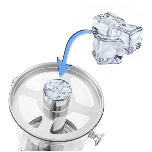 Chłodzenie napojów zapewnia specjalna konstrukcja dozownika do soku. Przez środek pojemnika przechodzi pionowa rurka, w której zmieści się 1 litr skruszonego lodu. Dzięki temu chłód rozchodzi się równomiernie po całym zbiorniku, a goście mogą dłużej cieszyć się zimnym napojem.