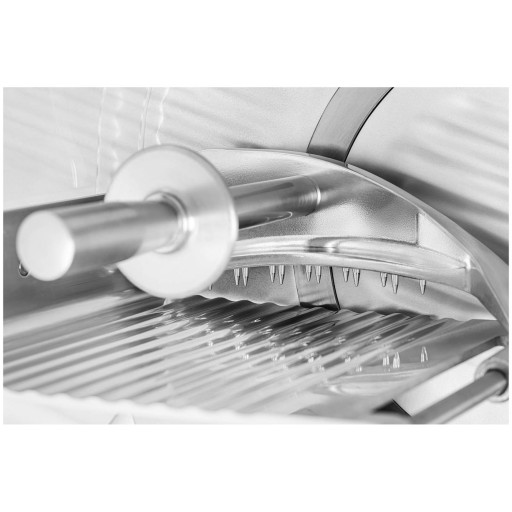 Wydajna praca możliwa jest dzięki dużej mocy (180 W) oraz przemyślanej konstrukcji urządzenia. Nóż ze specjalnej stali stosowanej do produkcji ostrzy gastronomicznych ma średnicę 250 mm. Pewnie i szybko kroi produkty spożywcze w plastry o grubości 0-12 mm. Krajalnicę przystosowano do odkrawania płatów 120 mm (wys.) na 180 mm (szer.)