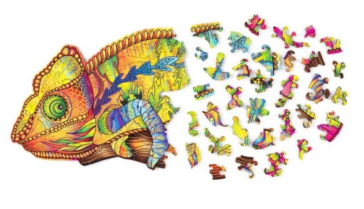 Piękne drewniane puzzle to pomysł na prezent. Te puzzle wyróżniają się wśród innych nie tylko wzornictwem i kolorystyką. To co zasługuje na uwagę to fakt, że wśród 143 elementów, z których są złożone niektóre mają kształty innych zwierząt, a każdy element ma inny kształt i kolorystykę. Będziecie potrafili je dopasować?