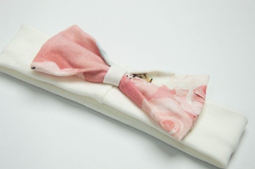 Ozdobą całości jest praktyczna i piękna opaska ozdobiona ręcznie wykonaną kwiecistą kokardą.