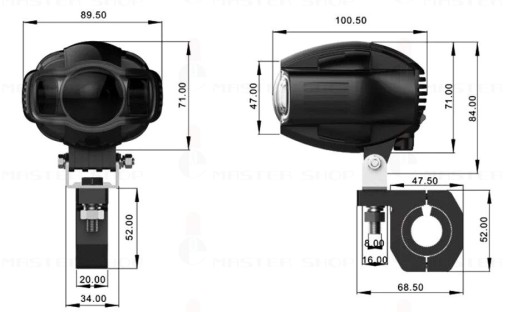 Nasz reflektor jest uniwersalny i pasuje do większości motocykli z 22-32 mm - E03C możesz zamocować na osłonie silnika, rurze czy kierownicy.