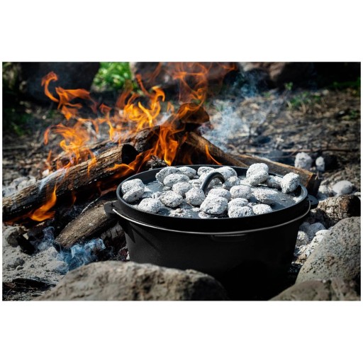 3 mocne nóżki odpowiadają za stabilność garnka w czasie przygotowywania posiłku na ognisku. Są na tyle wysokie, że pod kociołkiem z łatwością zmieszczą się rozgrzany węgiel lub kawałki drewna. Jeśli chcesz dodatkowo ogrzać danie od góry, możesz ułożyć rozżarzony brykiet na płaskiej pokrywce.