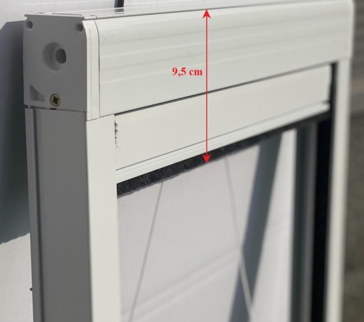 ✅ Wysokość moskitiery po zwinięciu u góry to zaledwie 9,5 cm. Wymagana powierzchnia do przyklejenia kasety to ok. 2-3 cm