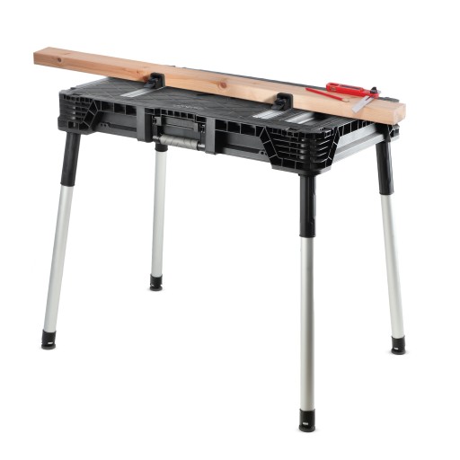 Przenośna stacja robocza Keter Jobmade to doskonały wybór dla profesjonalistów i entuzjastów majsterkowania, którzy potrzebują praktycznego stołu warsztatowego, radzącego sobie z praktycznie wszystkim. Jego udźwig to 450 kg i został wykonany z uwzględnieniem wielu udogodnień dla użytkownika. Wysokość stołu po rozłożeniu wynosi 81 cm.